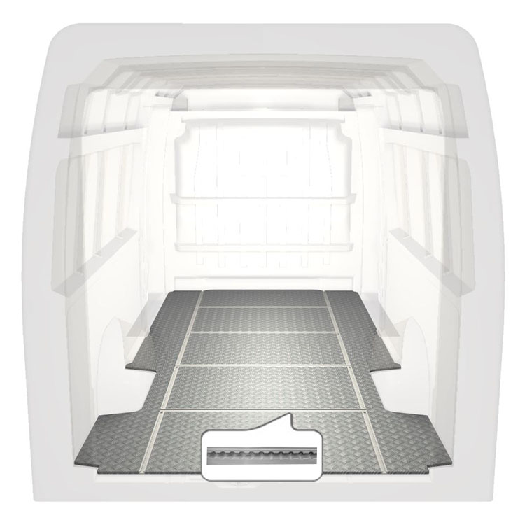 Disponível para uma gama de modelos de carrinhas furgão, a nossa gama de pisos leves e robustos com calhas transversais está equipada com uma chapa de alumínio antiderrapante e calhas de carga (longitudinal e transversalmente) para uma instalação rápida e segura dos sistemas de equipamentos de armazenamento e outros acessórios. A instalação do piso não requer nenhum tipo de perfuração, dado que é colocado com uma cola com grande capacidade adesiva e uma resistência superior à das porcas e parafusos, algo que também ajuda a proteger o valor residual do veículo.