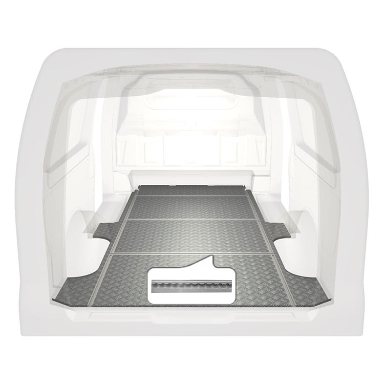 Disponível para uma gama de modelos de carrinhas furgão, a nossa gama de pisos leves e robustos com calhas transversais está equipada com uma chapa de alumínio antiderrapante e calhas de carga (longitudinal e transversalmente) para uma instalação rápida e segura dos sistemas de equipamentos de armazenamento e outros acessórios. A instalação do piso não requer nenhum tipo de perfuração, dado que é colocado com uma cola com grande capacidade adesiva e uma resistência superior à das porcas e parafusos, algo que também ajuda a proteger o valor residual do veículo.