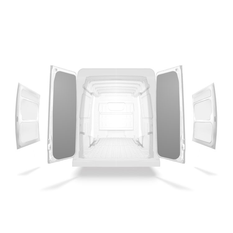 A nossa gama de painéis para portas traseiras além de ser leve também foi desenhada para guarnecer e abrilhantar o seu veículo comercial. Estes painéis, engenhosamente desenhados para taparem o interior das portas traseiras, minimizam os sinais de desgaste e, além disso, são muito fáceis de limpar. Estes painéis para portas traseiras instalam-se de forma rápida e fácil, graças à utilização de uma cola com grande capacidade adesiva, superior à das porcas e parafusos. Uma outra vantagem deste tipo de instalação é a proteção do valor residual do veículo, embora também seja possível colocar os painéis recorrendo ao método tradicional de instalação mediante parafusos.