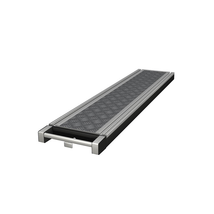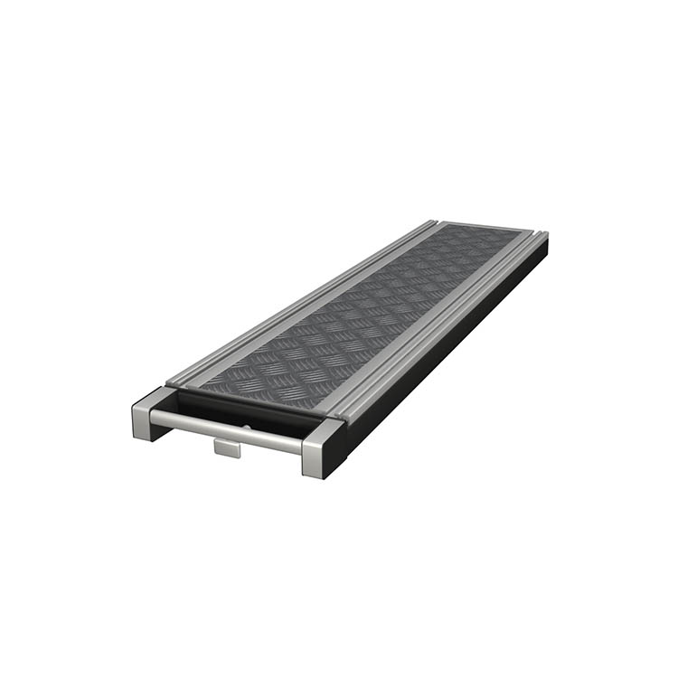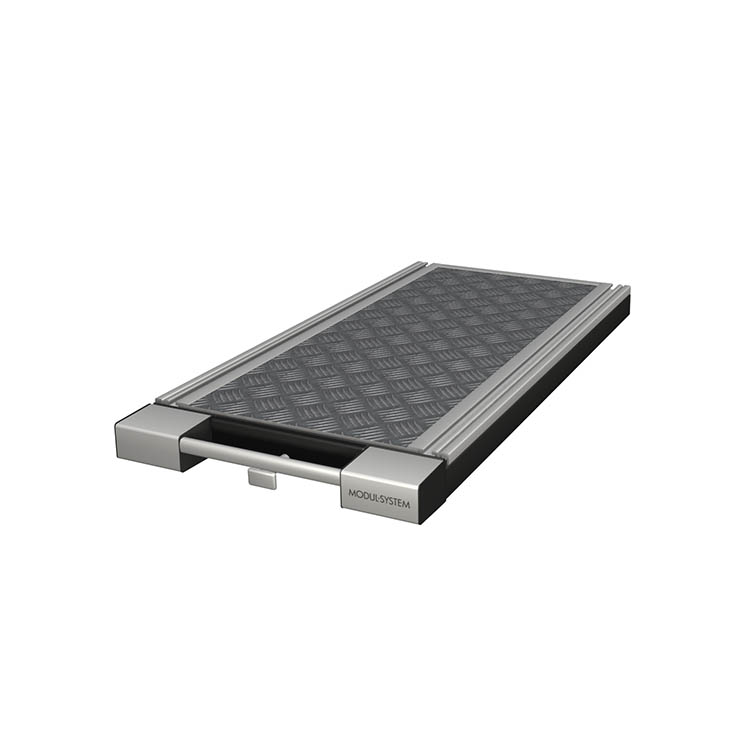 As bases extensíveis são fixadas ao piso do veículo e são indicadas para carregar e descarregar produtos pesados e volumosos. Um mecanismo simples de desbloqueio permite extrair facilmente parte da base do veículo. A base é extraível em 70 porcento. As plataformas de carga com arestas metálicas estão disponíveis em três modelos diferentes, todas elas fabricadas por encomenda e incluem um tapete de borracha.