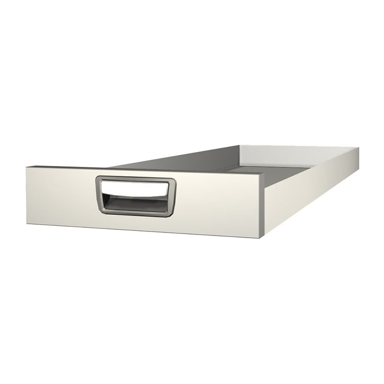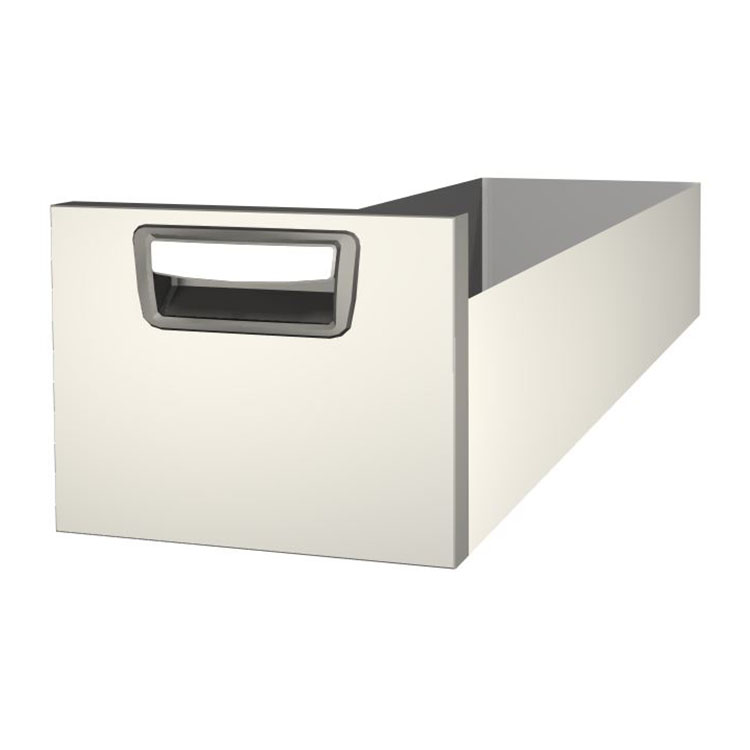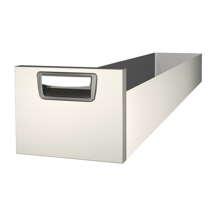 As gavetas extra-longas são concebidas para artigos pesados e volumosos e têm uma capacidade de carga de 80 kg por gaveta, com um máximo de 200 kg por unidade de gaveta. Se forem utilizadas placas de inserção de borracha, a capacidade de carga é aumentada para 100 kg por gaveta. As gavetas podem ser puxadas aproximadamente 80 por cento, e vêm em profundidades de até 2 m. Pode combiná-las livremente para se adequarem perfeitamente à sua carga e ao seu veículo. As gavetas estão equipadas com rolamentos de esferas e um CRP (Crash Restraint Panel) como padrão. Este último evitará que cargas pesadas sejam impelidas para a frente em caso de acidente.