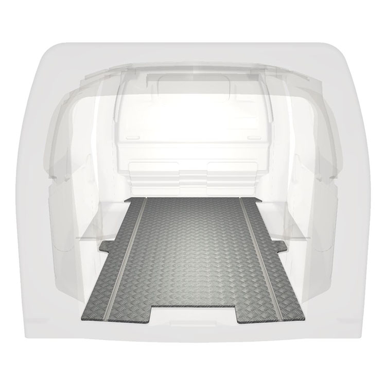 Ligeiro e robusto piso de carrinha extra longo para Citroën Jumpy / Peugeot Expert / Toyota ProAce com chapa de alumÃnio antiderrapante e calhas de carga (longitudinal) para instalação rápida e segura dos sistema de transporte e outros acessórios.