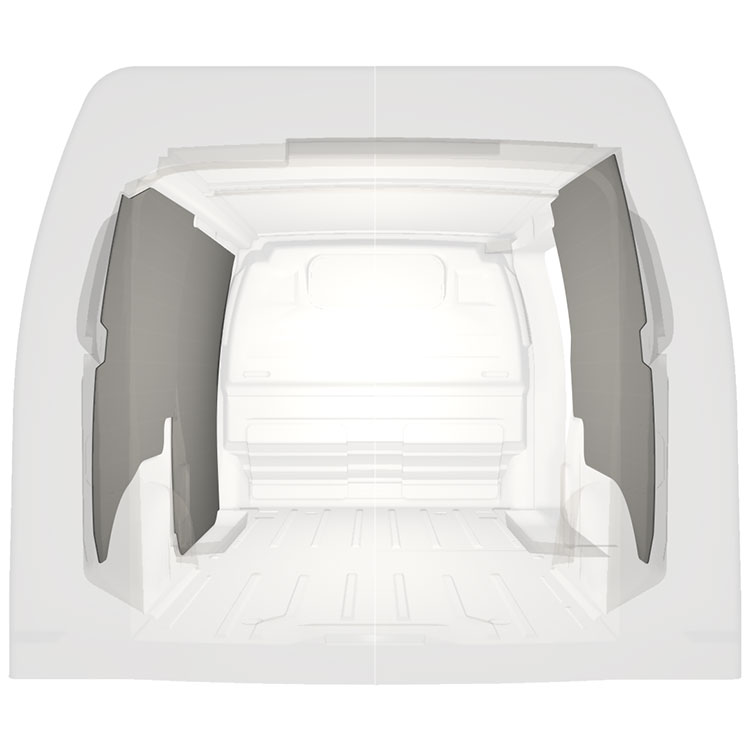 Ligeiro revestimento integral para as paredes interiores do Citroën Jumpy / Peugeot Expert / Toyota ProAce com porta lateral à direita.O revestimento cria um ambiente trabalho luminoso e agradável e é fácil de limpar.