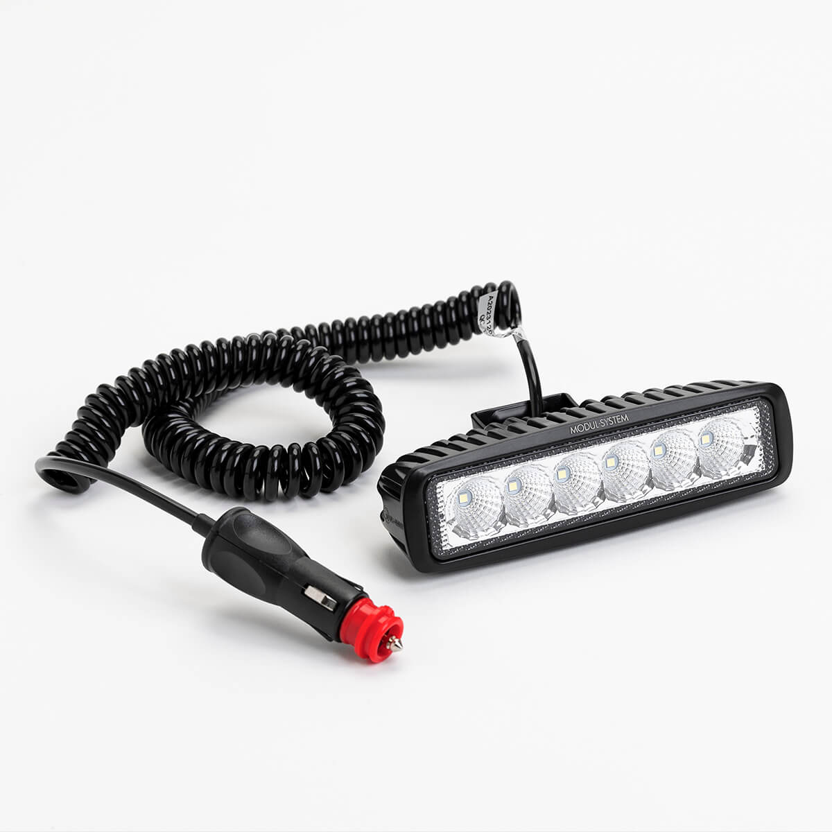 Work light with six individual LEDs, which will provide a white light. It comes with a pre-mounted, strong and non-scratch magnetic base, and is powered from the cigarette socket through the spiral cable. Thanks to IP67 classification, the light is also suitable for outdoor use. The product is E marked.