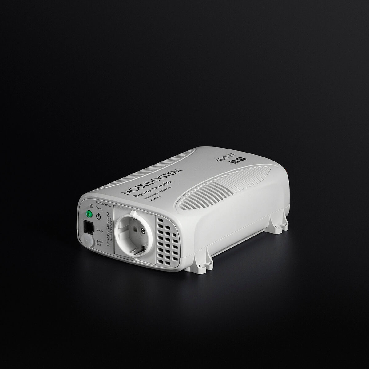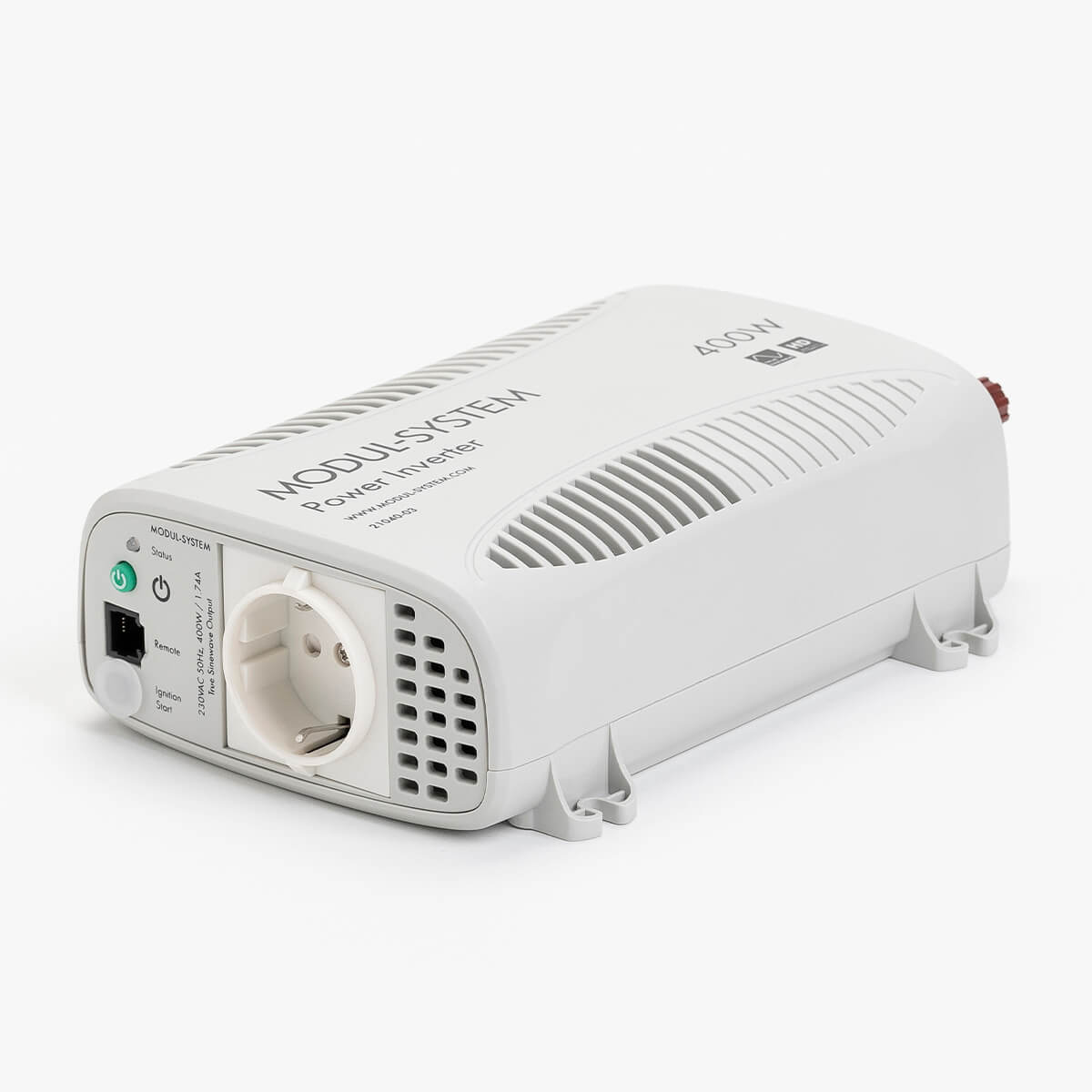 The inverter has a status indicator and an EU output socket. It also features an ignition start function. Integrated fixing points and high quality DC connectors make the installation simple.