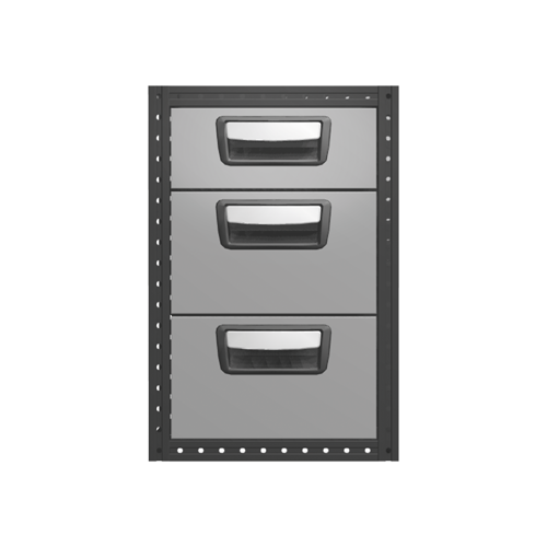 Each drawer is fitted with ball bearing runners as standard, and has a load capacity of 30 kg with a maximum of 100 kg per drawer unit. The drawers are fully extendable and equipped with stoppers. For maximum utility, the drawer unit can be equipped with accessories such as foam plastic liners, plastic inserts and dividers. To help optimize the weight, cover panels and tool boards are optional.