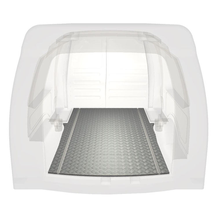 Ligeiro e robusto piso de carrinha extra longo para Volkswagen Caddy Maxi com chapa de alumÃnio antiderrapante e calhas de carga (longitudinal) para instalação rápida e segura dos sistema de transporte e outros acessórios.
