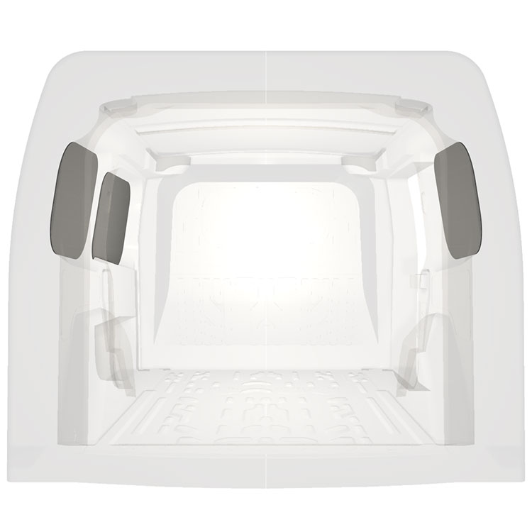 Painel de revestimento ligeiro para as paredes interiores do Opel Combo / Fiat Doblò com porta lateral à direita. O revestimento cria um ambiente trabalho luminoso e agradável e é fácil de limpar.