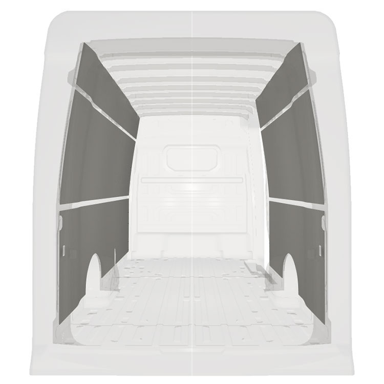 Para otimizar o peso, o revestimento pré-cortado é fabricado para caber no espaço entre os feixes do veículo, garantindo que não são intrusivos e que maximizam o espaço.