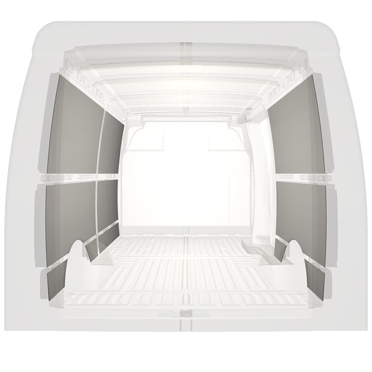 Para otimizar o peso, o revestimento pré-cortado é fabricado para caber no espaço entre os feixes do veículo, garantindo que não são intrusivos e que maximizam o espaço.