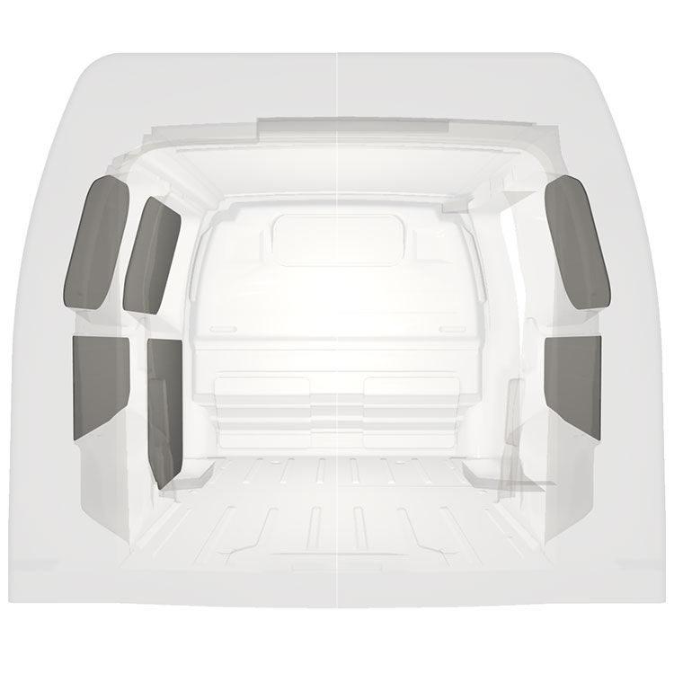 Para otimizar o peso, o revestimento pré-cortado é fabricado para caber no espaço entre os feixes do veículo, garantindo que não são intrusivos e que maximizam o espaço.