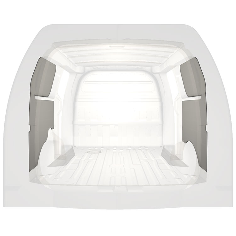 Ligeiro revestimento pré-cortado para as paredes interiores do Hyundai H1 comportas duplas laterais. O revestimento cria um ambiente trabalho luminoso e agradável e é fácil de limpar.