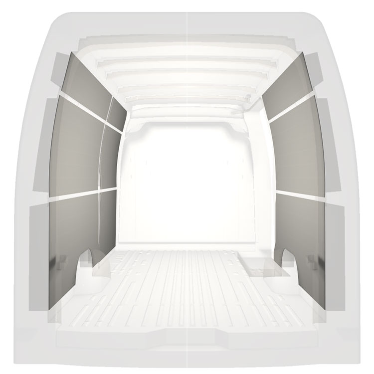 Para otimizar o peso, o revestimento pré-cortado é fabricado para caber no espaço entre os feixes do veículo, garantindo que não são intrusivos e que maximizam o espaço.