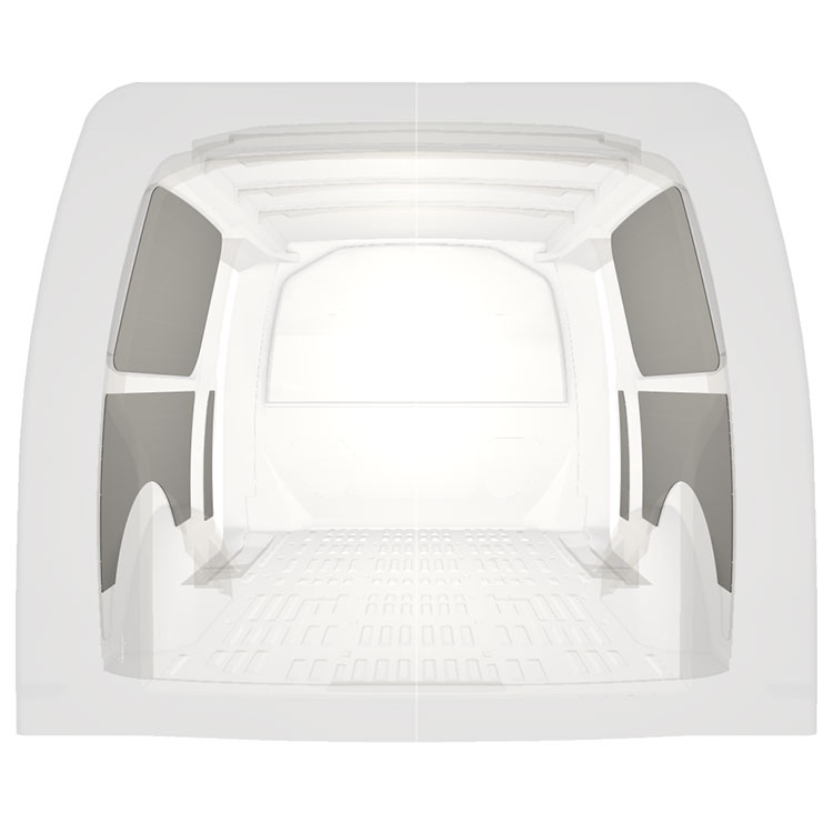 Para otimizar o peso, o revestimento pré-cortado é fabricado para caber no espaço entre os feixes do veículo, garantindo que não são intrusivos e que maximizam o espaço.