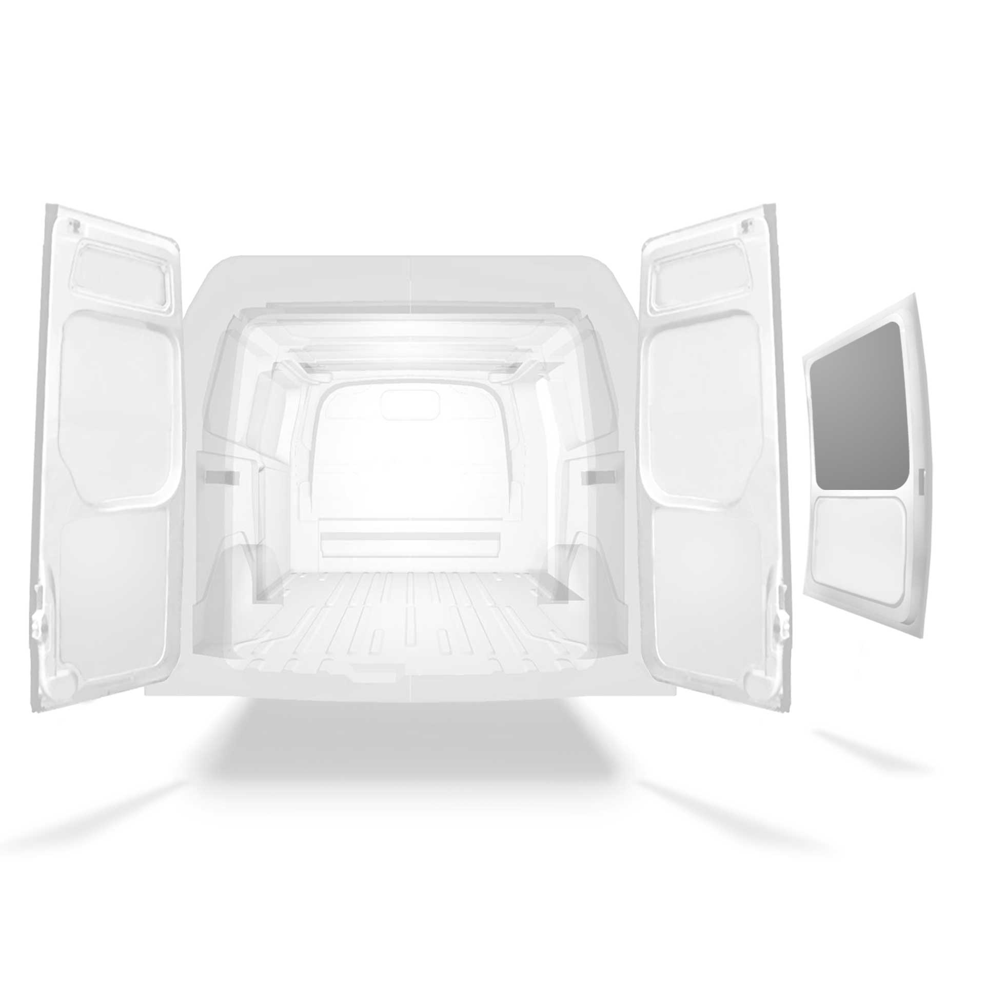 Painel de revestimento ligeiro para as Porta do Ford Transit Custom com porta lateral à direita. O revestimento reduz o desgaste do interior e ajuda a manter o valor residual do veículo.