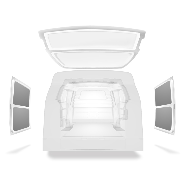 Para permitir uma conversão adicional, os revestimentos para as paredes internas, portas traseiras e tejadilho do veículo estão disponíveis em separado.