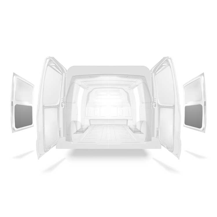 Revestimento leve para a parte inferior da porta lateral de um Mercedes Vito com duplas portas laterais. O revestimento irá reduzir o desgaste do interior e ajudar a manter o valor residual do veículo.