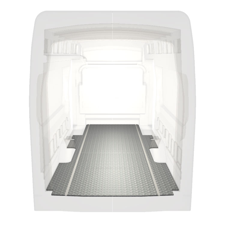 Ligeiro e robusto piso de carrinha padrão para Ford Transit com chapa de alumÃnio antiderrapante e calhas de carga (longitudinal) para instalação rápida e segura do sistemas de transporte e outros acessórios.