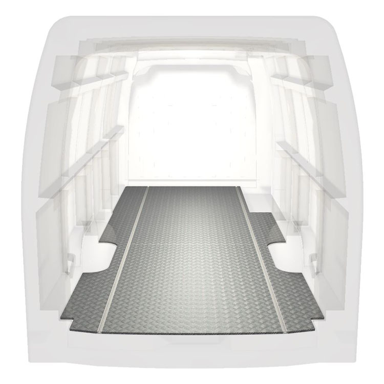 Ligeiro e robusto piso de carrinha extra longo para Renault Master / Opel Movano / Nissan NV400 com chapa de alumÃnio antiderrapante e calhas de carga (longitudinal) para instalação rápida e segura dos sistema de transporte e outros acessórios.