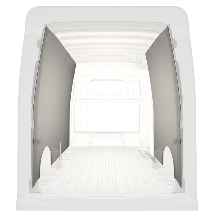 Para otimizar o peso, o revestimento pré-cortado é fabricado para caber no espaço entre os feixes do veículo, garantindo que não são intrusivos e que maximizam o espaço.