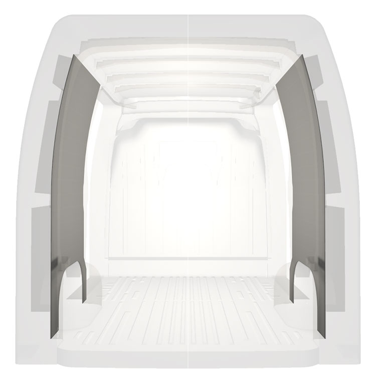Para otimizar o peso, o revestimento pré-cortado é fabricado para caber no espaço entre os feixes do veículo, garantindo que não são intrusivos e que maximizam o espaço.