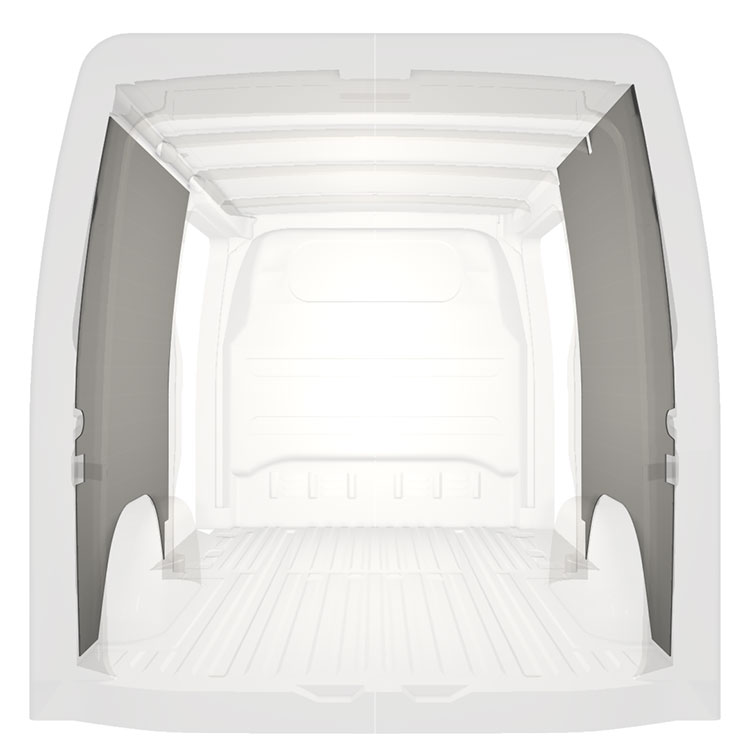 Ligeiro revestimento integral para as paredes interiores do Mercedes Sprinter com portas duplas laterais. O revestimento cria um ambiente trabalho luminoso e agradável e é fácil de limpar.