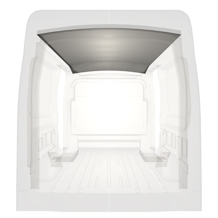 Ligeiro revestimento para o tejadilho do Ford Transit. O revestimento do tejadilho irá criar um acabamento interior profissional e um agradável ambiente de trabalho.