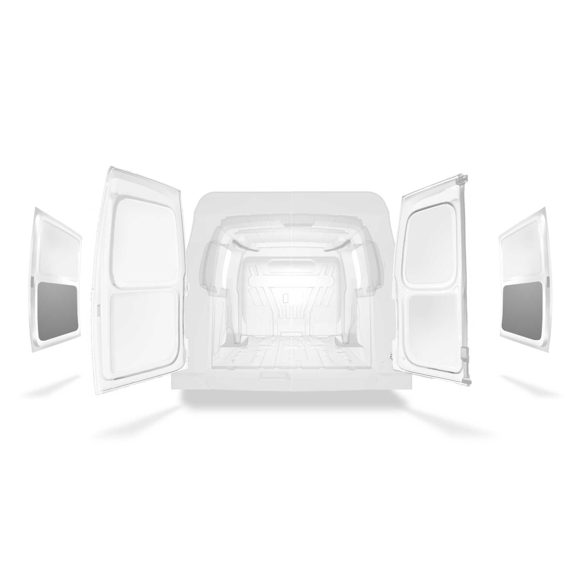 Revestimento leve para a parte inferior da porta lateral de um Ford Transit Connect com duplas portas laterais. O revestimento irá reduzir o desgaste do interior e ajudar a manter o valor residual do veículo.