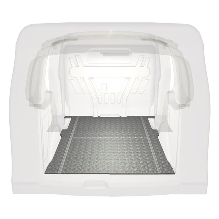 Ligeiro e robusto piso de carrinha padrão para Ford Transit Connect com chapa de alumÃnio antiderrapante e calhas de carga (longitudinal) para instalação rápida e segura do sistemas de transporte e outros acessórios.
