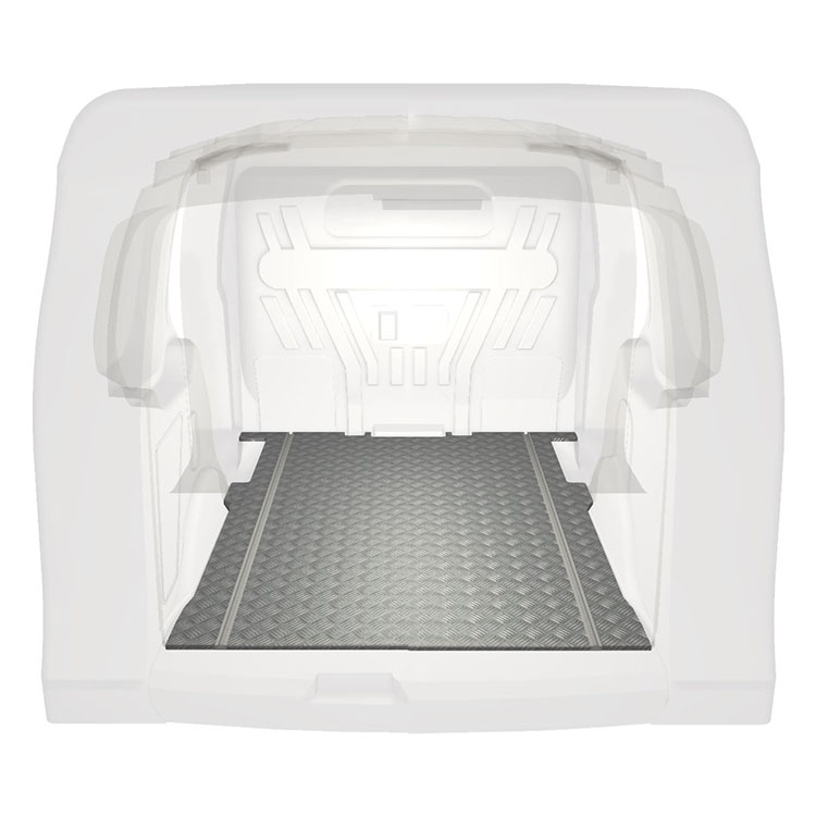 Ligeiro e robusto piso de carrinha extra longo para Ford Transit Connect com chapa de alumÃnio antiderrapante e calhas de carga (longitudinal) para instalação rápida e segura dos sistema de transporte e outros acessórios.