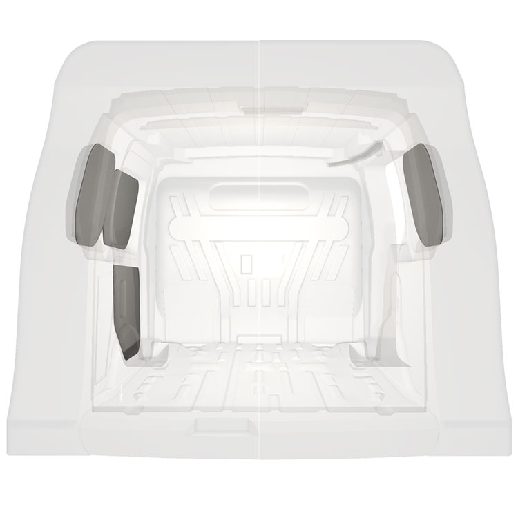 Para otimizar o peso, o revestimento pré-cortado é fabricado para caber no espaço entre os feixes do veículo, garantindo que não são intrusivos e que maximizam o espaço.