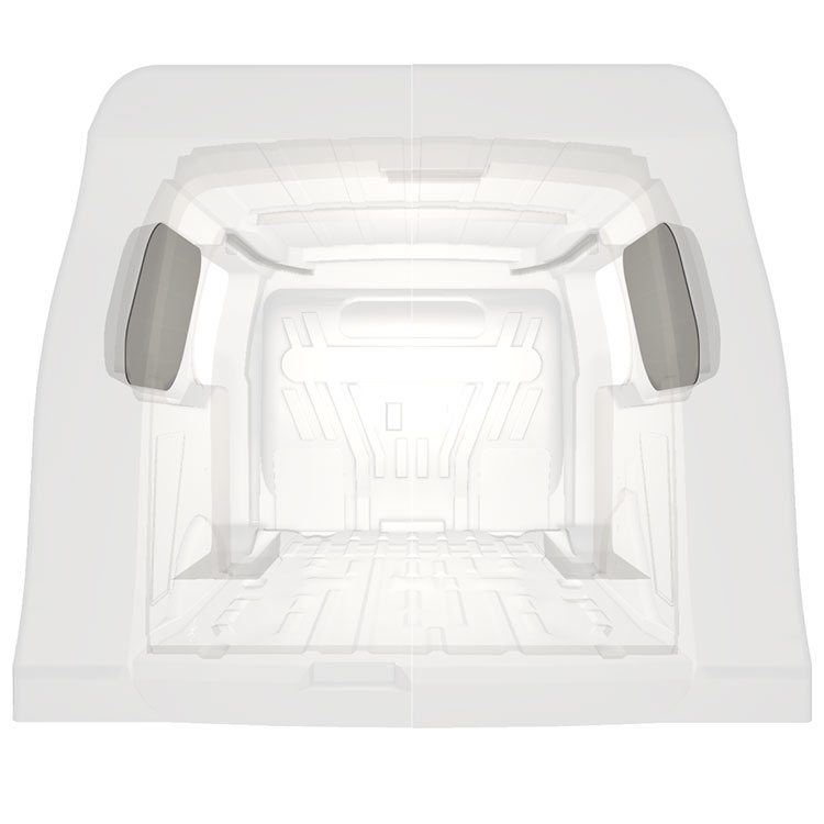 Para otimizar o peso, o revestimento pré-cortado é fabricado para caber no espaço entre os feixes do veículo, garantindo que não são intrusivos e que maximizam o espaço.