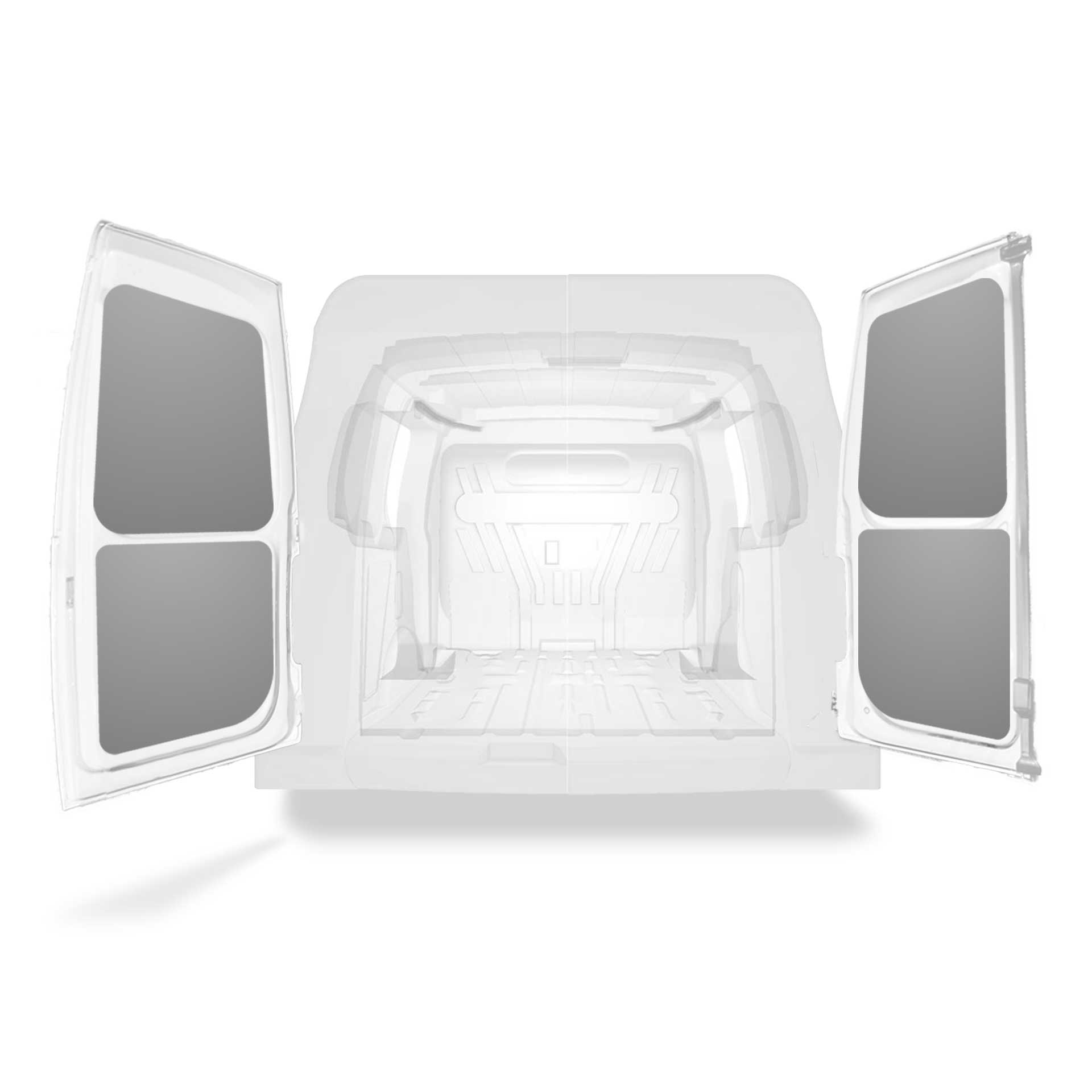 Painel de revestimento ligeiro para porta traseira de Ford Transit Connect com portas duplas. Concebidos para criar um acabamento profissional no interior, os revestimentos para portas protegem a carrinha e são fáceis de limpar.