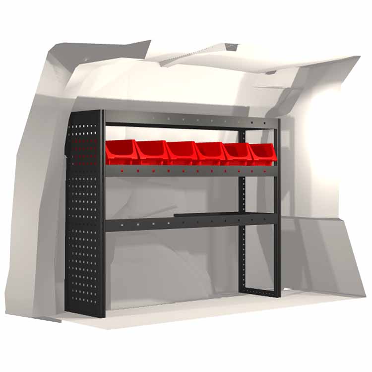 The racking has been specially designed to ensure the optimum fit to the vehicle, as well as the best possible functionality and safety. It has been developed for professional use, is flexible and is intended for service jobs in various types of business. All shelves are equipped with rubber mats, and all drawers with foam plastic liners. Assembly material is included.
