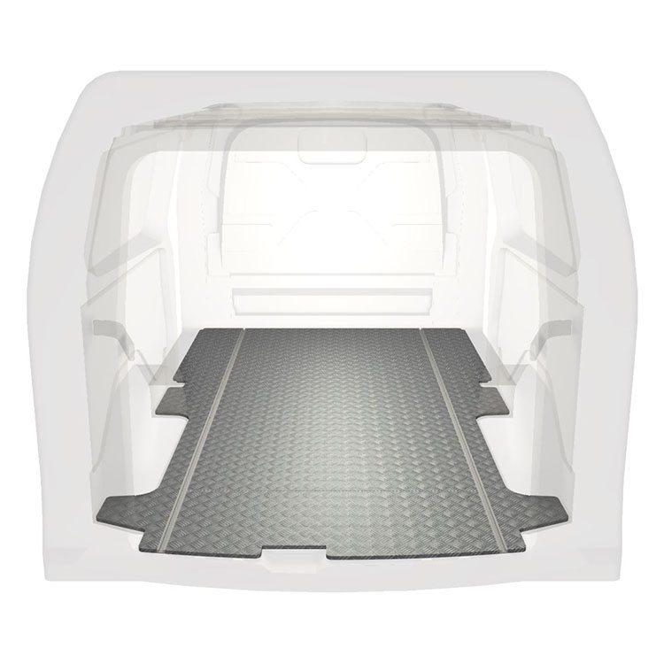 Ligeiro e robusto piso de carrinha padrão para Ford Transit Custom com chapa de alumÃnio antiderrapante e calhas de carga (longitudinal) para instalação rápida e segura do sistemas de transporte e outros acessórios.