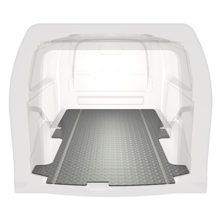 Ligeiro e robusto piso de carrinha extra longo para Ford Transit Custom com chapa de alumÃnio antiderrapante e calhas de carga (longitudinal) para instalação rápida e segura dos sistema de transporte e outros acessórios.