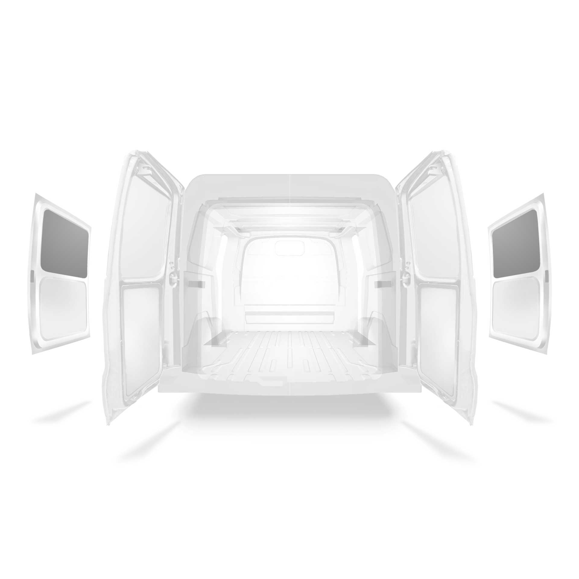 Painel de revestimento ligeiro para a porta lateral do Ford Transit Custom com dupla porta lateral. O revestimento reduz o desgaste do interior e ajuda a manter o valor residual do veículo.