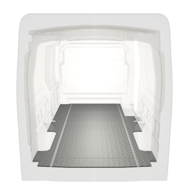 Ligeiro e robusto piso de carrinha padrão para Ford Transit com chapa de alumÃnio antiderrapante e calhas de carga (longitudinal) para instalação rápida e segura do sistemas de transporte e outros acessórios.