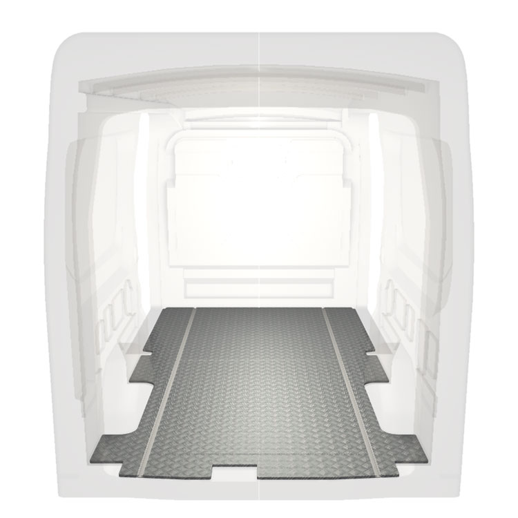 Ligeiro e robusto piso de carrinha extra longo para Ford Transit com chapa de alumÃnio antiderrapante e calhas de carga (longitudinal) para instalação rápida e segura dos sistema de transporte e outros acessórios.