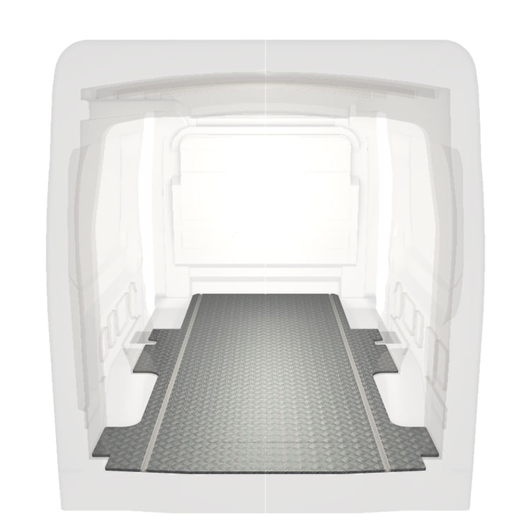 Ligeiro e robusto piso de carrinha extra longo para Ford Transit com chapa de alumÃnio antiderrapante e calhas de carga (longitudinal) para instalação rápida e segura dos sistema de transporte e outros acessórios.