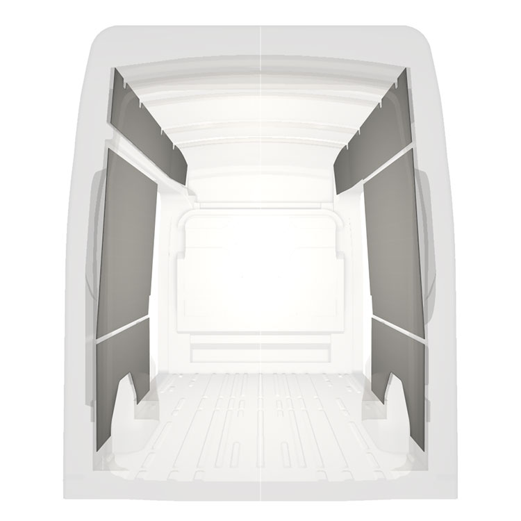 Para otimizar o peso, o revestimento pré-cortado é fabricado para caber no espaço entre os feixes do veículo, garantindo que não são intrusivos e que maximizam o espaço.
