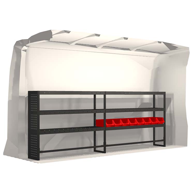 The racking has been specially designed to ensure the optimum fit to the vehicle, as well as the best possible functionality and safety. It has been developed for professional use, is flexible and is intended for service jobs in various types of business. All shelves are equipped with rubber mats, and all drawers with foam plastic liners. Assembly material is included.