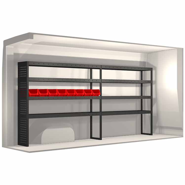 The racking has been specially designed to ensure the optimum fit to the vehicle, as well as the best possible functionality and safety. It has been developed for professional use, is flexible and is intended for service jobs in various types of business. All shelves are equipped with rubber mats, and all drawers with foam plastic liners. Assembly material is included.