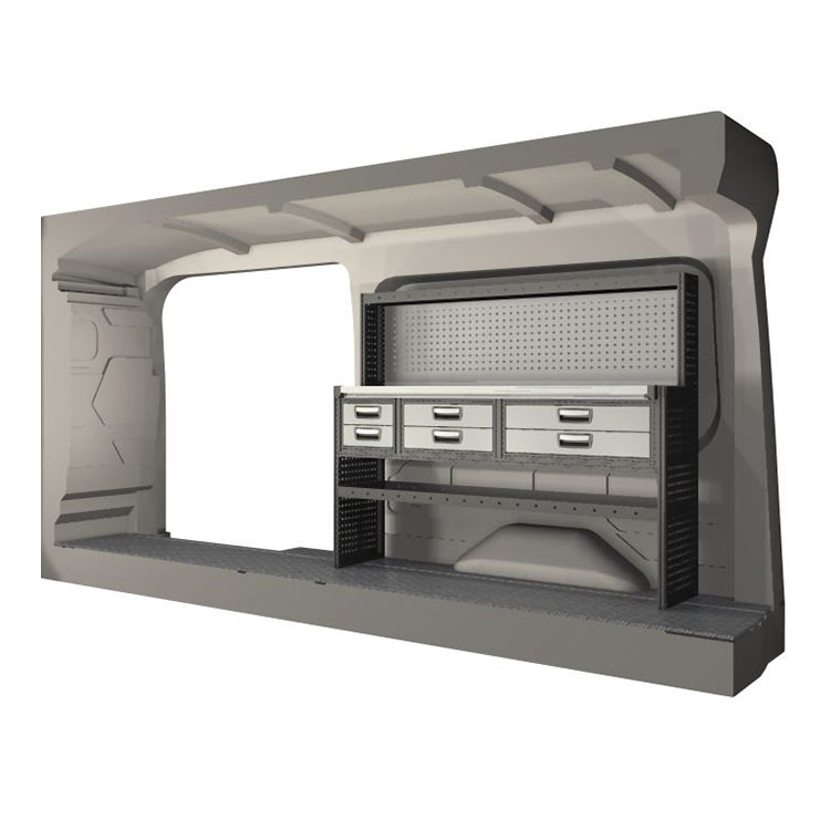 The racking has been specially designed to ensure the optimum fit to the vehicle, as well as the best possible functionality and safety. It has been developed for professional use, is flexible and is intended for service jobs in various types of business. All shelves are equipped with rubber mats, and all drawers with foam plastic liners. Assembly material is included.