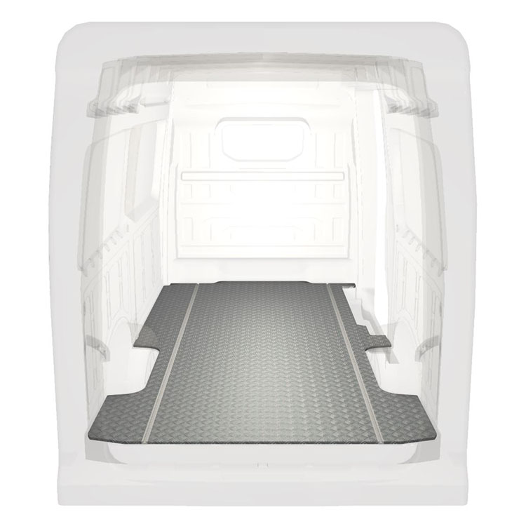 Ligeiro e robusto piso de carrinha extra longo para Volkswagen Crafter / MAN TGE com chapa de alumÃnio antiderrapante e calhas de carga (longitudinal) para instalação rápida e segura dos sistema de transporte e outros acessórios.