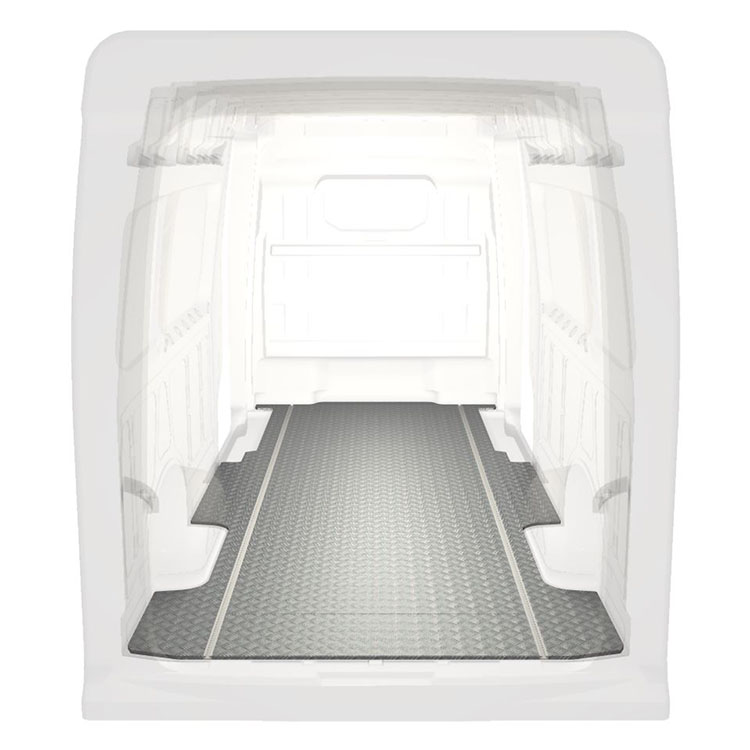 Ligeiro e robusto piso de carrinha padrão para Volkswagen Crafter / MAN TGE com chapa de alumÃnio antiderrapante e calhas de carga (longitudinal) para instalação rápida e segura do sistemas de transporte e outros acessórios.