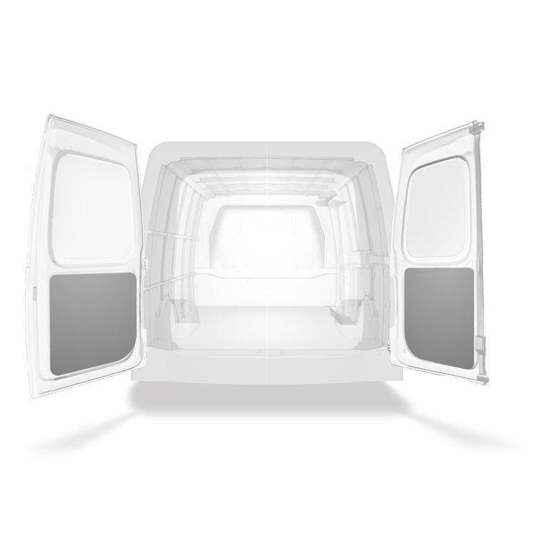 The rear door linings are designed and fabricated to fit in the sections of the rear door/tailgate of the vehicle to minimize weight. The liners protect the vehicle, create a bright working environment and are easy to wipe clean.