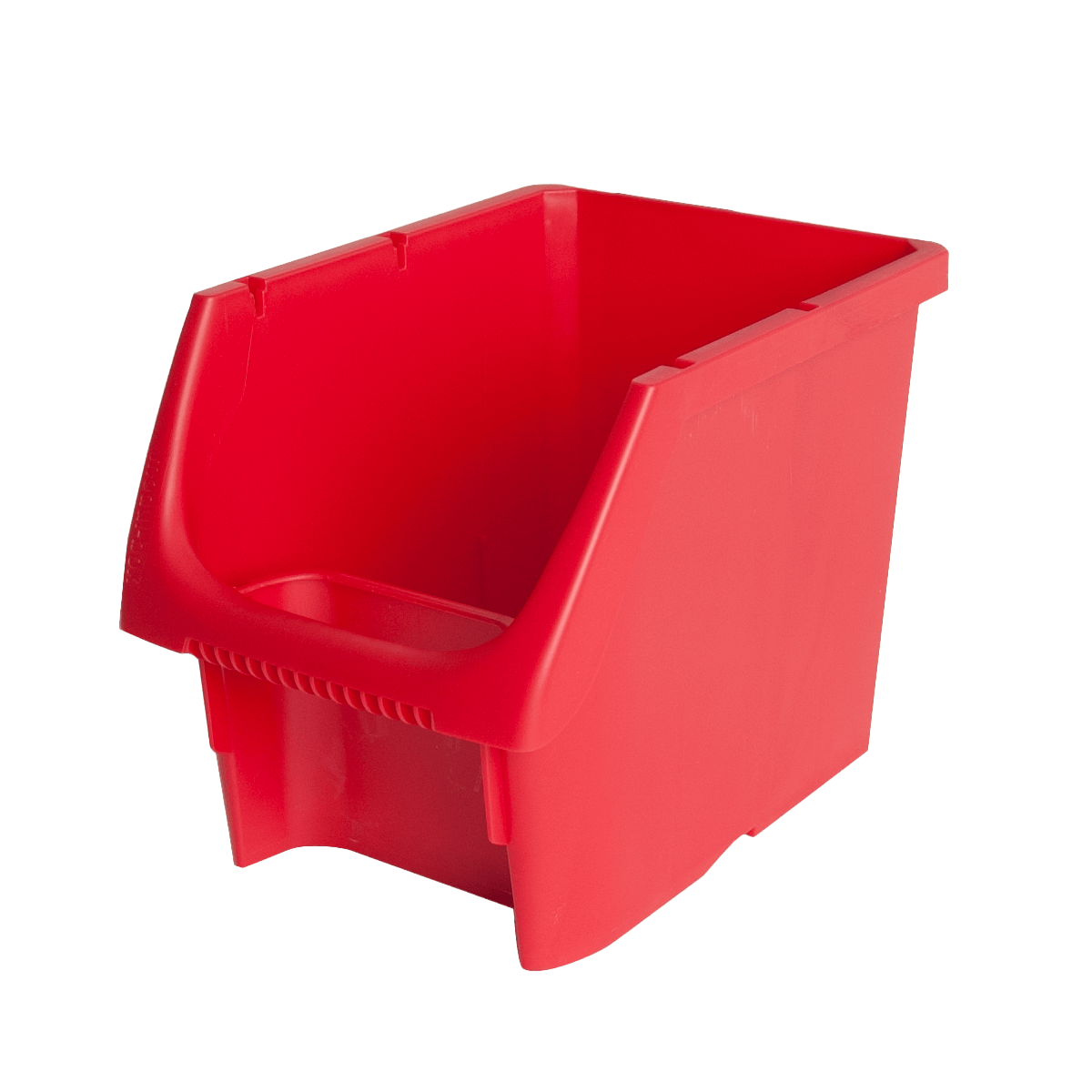 Modul-Box, compatível com prateleiras com profundidade de 216 mm. Fabricada em plástico resistente a impactos e à maioria dos óleos, ácidos e produtos químicos.