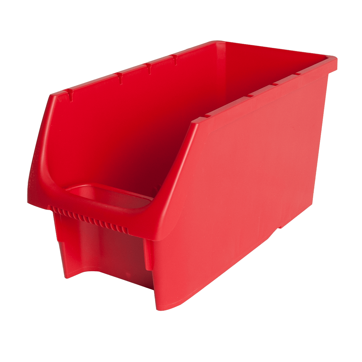 Modul-Box, compatível com prateleiras com profundidade de 324 mm. Fabricada em plástico resistente a impactos e à maioria dos óleos, ácidos e produtos químicos.