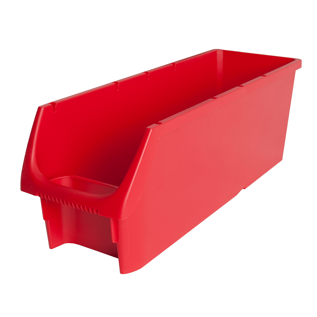 Modul-Box, compatível com prateleiras com profundidade de 486 mm. Fabricada em plástico resistente a impactos e à maioria dos óleos, ácidos e produtos químicos.
